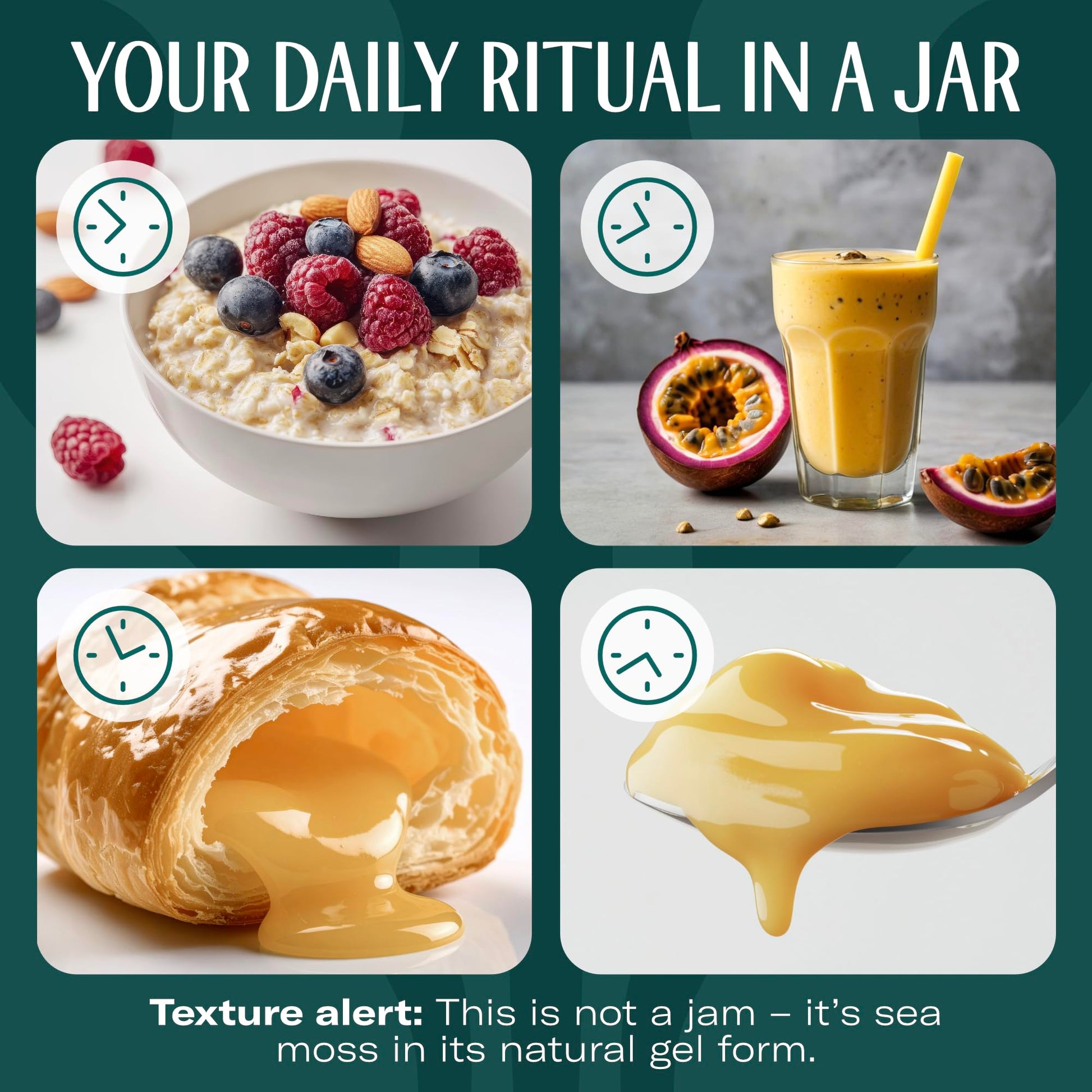 - Smooth, Simple, Versatile: our sea moss comes in a smooth gel-like consistency, not a jam or jelly; add it to drinks, smoothies, teas, juices, oatmeal, or yogurts or take by the spoon; also great as a natural face or hand mask thanks to its skin-loving minerals, if you’re looking for something different; one gel with many ways to benefit
